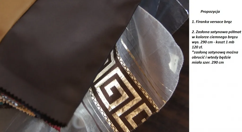 Przedstawiamy Państwu piękna firanę o wzorze Versace. Firanka utrzymana jest w kolorystyce ciemnego brązu oraz złota.