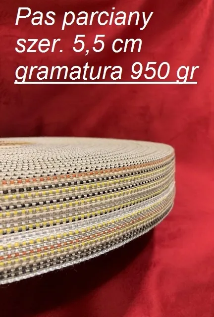 Do najlepszych pasów tapicerskich parcianych zaliczają się pasy o gramaturze 950 gr/m , gęstym dobrze utkanym splotem , który podczas naciągnięcia pasa na ramie mebla nie powoduje rozciągnięcia jego włókien.