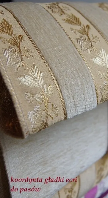 Piękna i elegancka tkanina gładka szenilowa, zachywcająca pięknym blaskiem mieniącego się koloru ecri oraz jasnego złotego ecri. Tkanina podczas dotyku jest miękka , miła i wygląda niezwykle ciekawie.