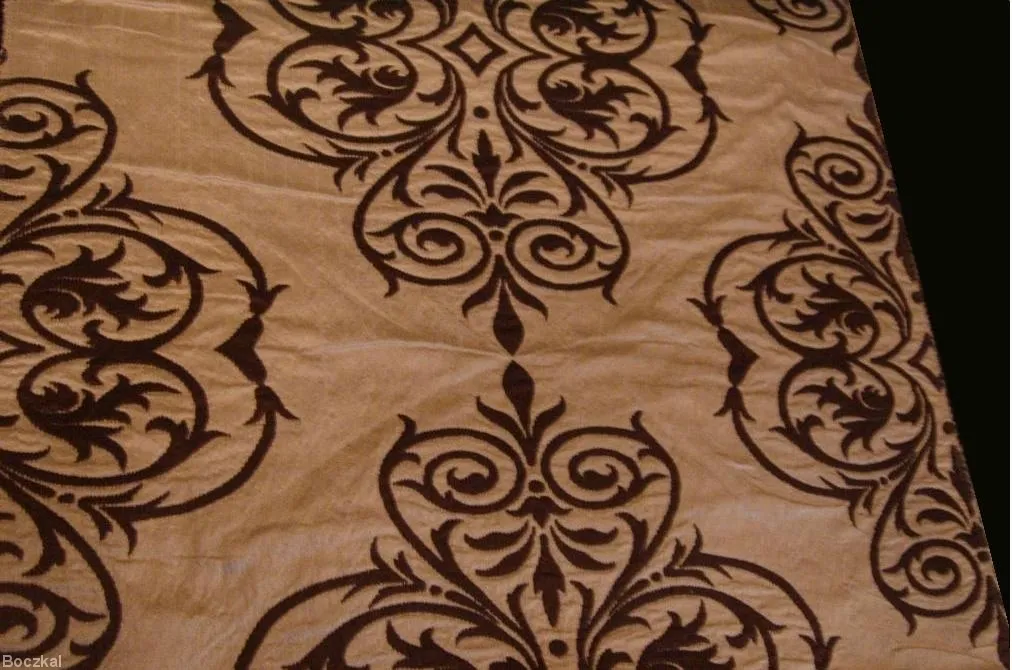 Tkanina jest wykończona idealnie ornamentami stylowymi , co podkreśla fason materiału.