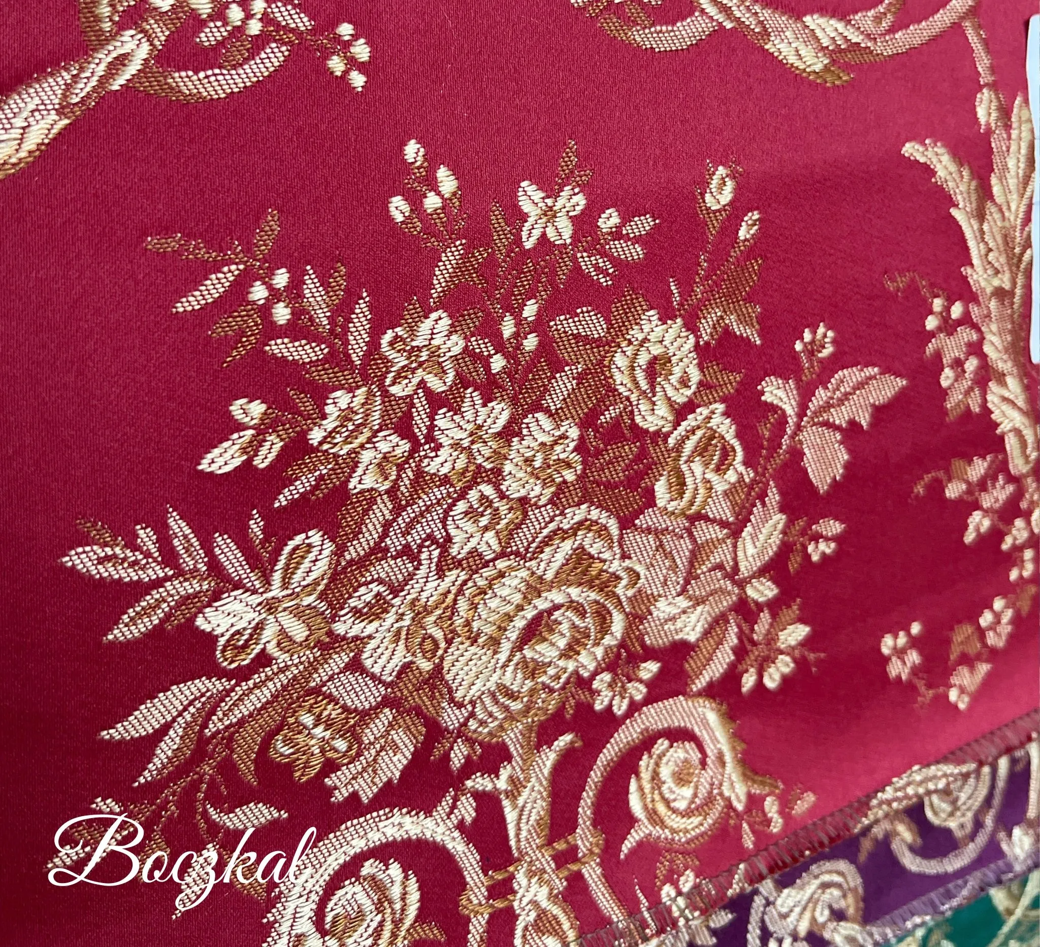 To materiał o duszy — pełen pasji, klasy i królewskiego majestatu. Jego głęboka czerwień przyciąga spojrzenia, a złoto-beżowy wzór nadaje jej blask wiecznego luksusu. Tkanina ta jest jak elegancki toast wzniesiony w imię piękna — odważna, romantyczna i ponadczasowa.