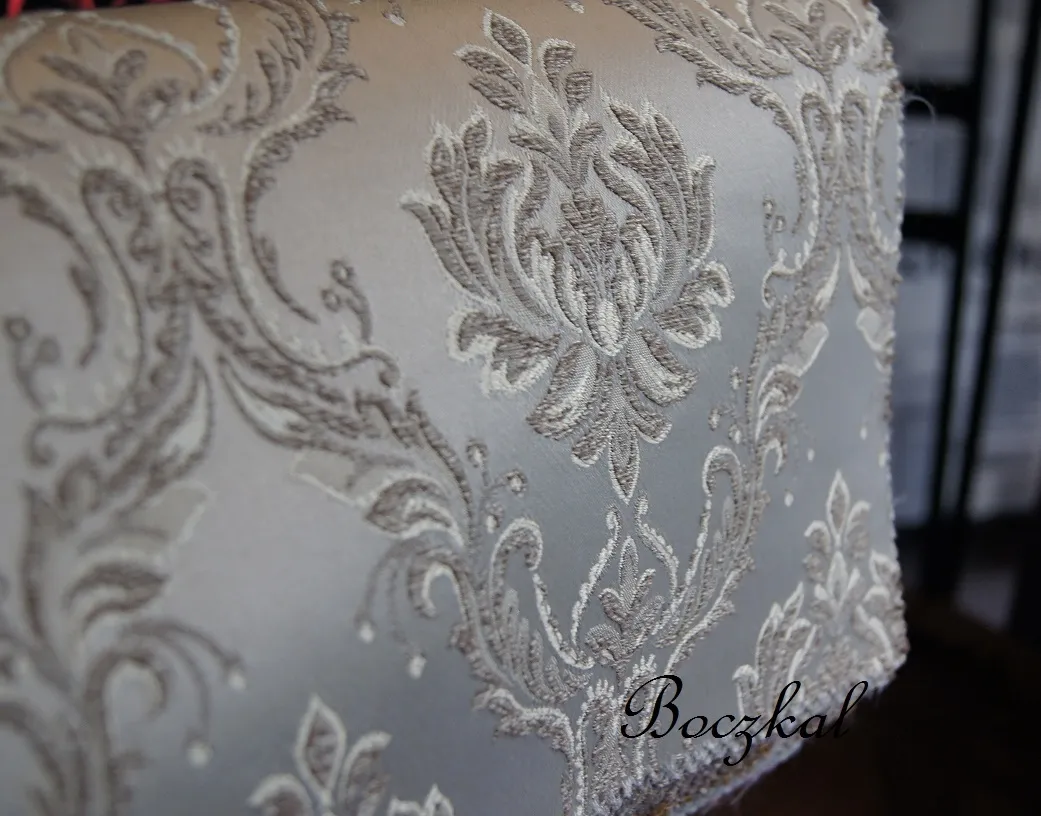 Ciekawe połączenie impregnowanej satyny z klasycznym ornamentem oraz delikatna jedwabistość i połysk tego materiału sprawiają , że tkanina wygląda na wyjątkową i oryginalną w aranżacjach stylowych.