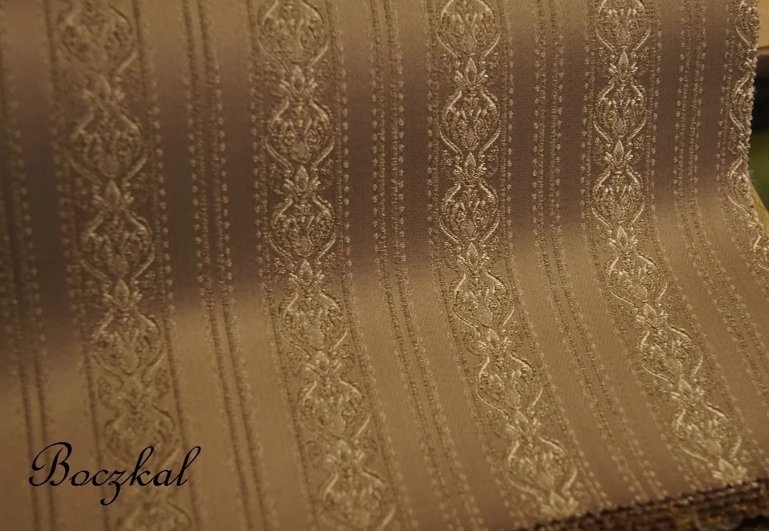 Jest to luksusowa tkanina , o wyjątkowych barwach satyny obiciowej oraz delikatnych pasach, które delikatnie załamując się zmieniają swoją barwę .