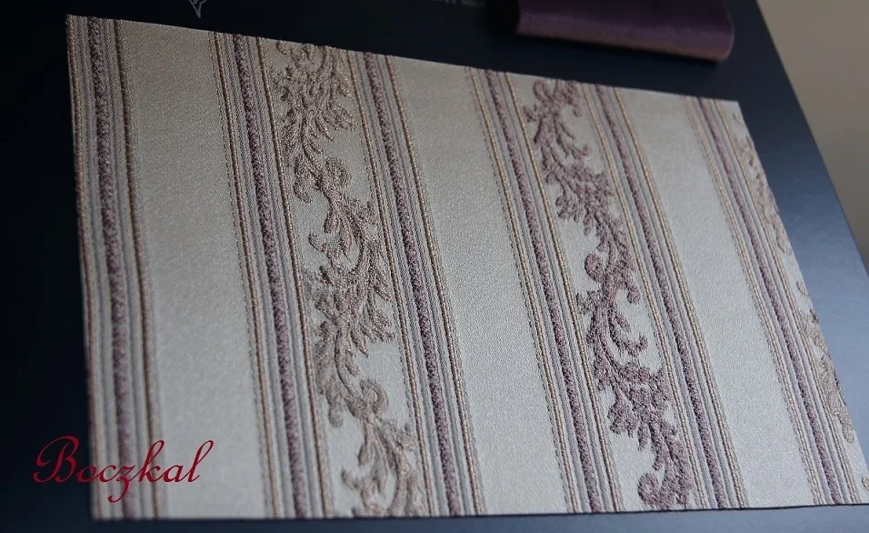 Przedstawiamy Państwu piękny stylowy materiał obiciowy, który posiada niezwykle ciekawy mieniący się motyw ornamentowy, umiejscowiony pomiędzy pasami stylowymi.