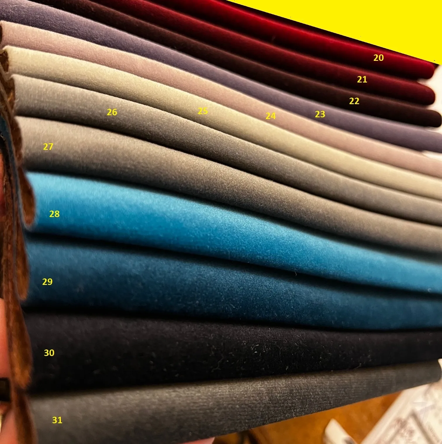 Welury to również wysokiej klasy materiały obiciowe o wyjątkowym, trwałym charakterystycznym krótkim i miękkim włosiu. W naszej ofercie znajdziecie Państwo bogatą paletę kolorów RAL.